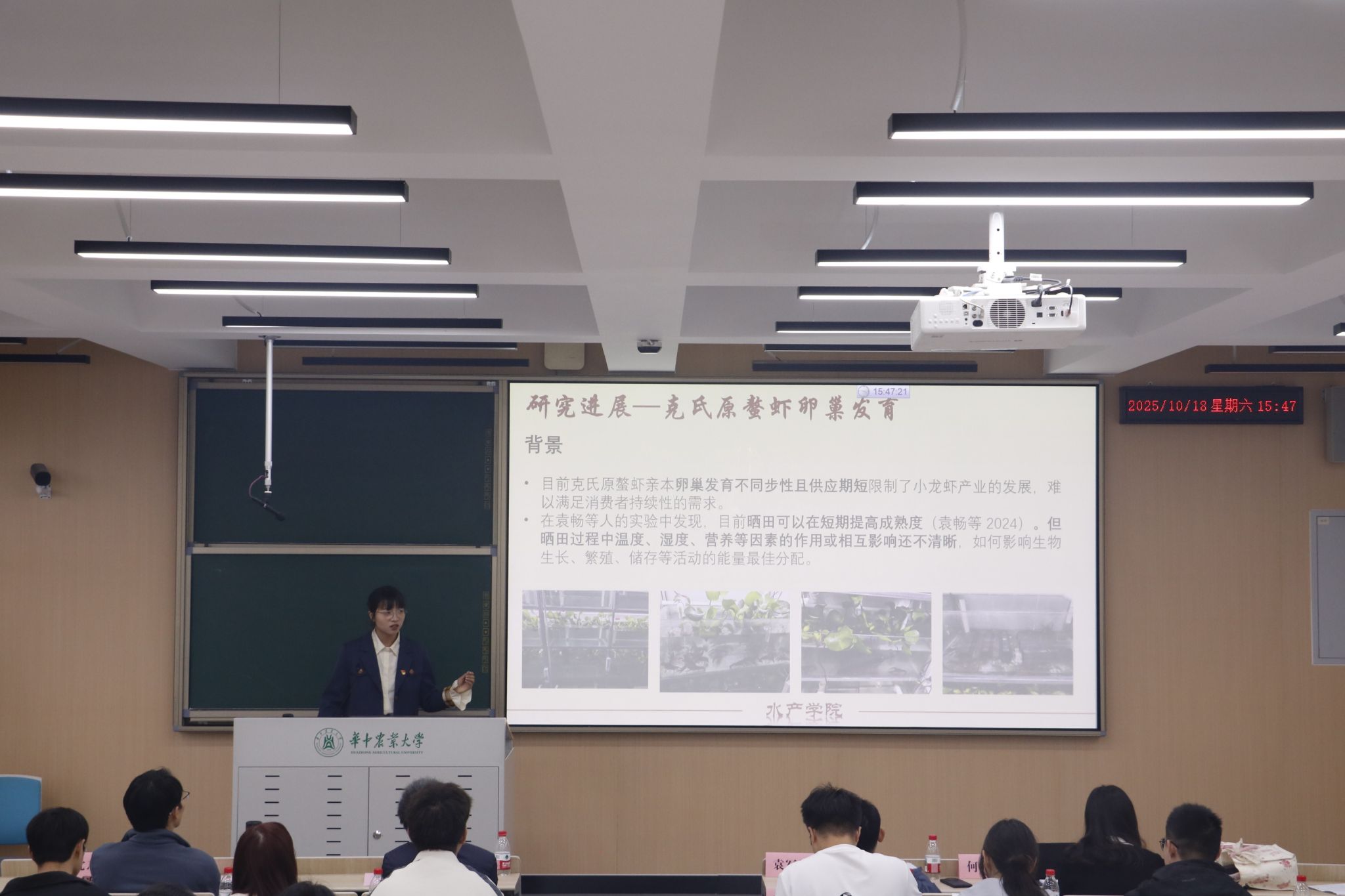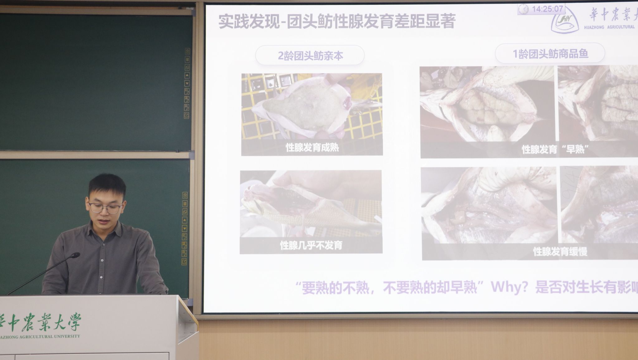 于跃2024年获评国家奖学金,在上一年度发表2项刀鲚性别鉴定国家专利,并带领团队获2025中国国际大学生创新大赛(湖北复赛)金奖。余岸艮专注水产动物代谢调控,发表4篇一作论文,成果揭示脂质降解机制、解析高脂饮食损伤机制;多次在国际会议作报告,获水产学会年会“优秀研究生报告”一等奖。