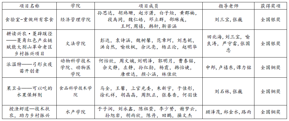 授渔水产学生创业团队申报的《授渔虾道—技术扶农,助力乡村振兴》项目获全国铜奖。