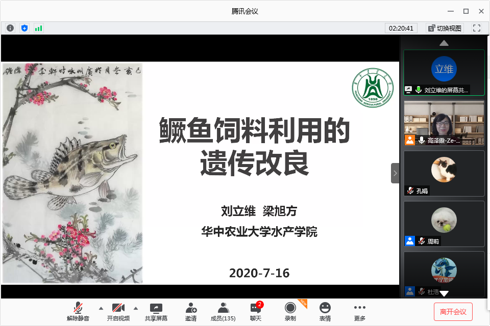 在线上腾讯会议组织召开依托于“长江经济带大宗水生生物产业绿色发展”教育部工程研究中心的“动物种质资源保护与挖掘利用”平台学术研讨会,报告由足球比分168