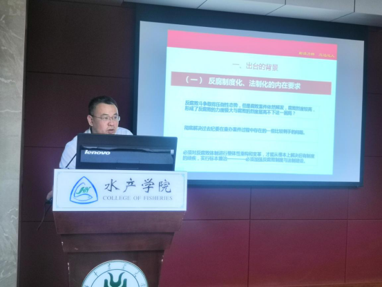 2019年党风廉政建设宣传教育月专题党课在水产楼109天辰报告厅进行。校纪委办公室主任邹亚受邀做了题为“改革正当时,良法应运生”的专题辅导报告。足球比分168