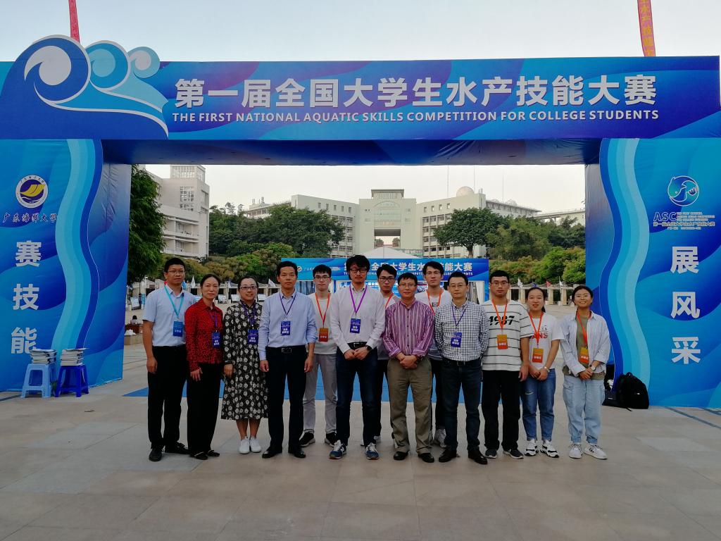 副院长高坚教授带队参加此次大赛,袁军法副教授担任裁判团评委成员。在面对专业海洋类高校中国海洋大学、上海海洋大学、大连海洋大学、广东海洋大学等强手的同台竞争和我校海洋领域处于极度弱势的情况下,我校6位参赛队员在大赛中充分展现了积极向上、勇攀高峰的精神,最后由袁军法副教授指导的谢全同学在“鱼病的常规检查与常见鱼病识别”项目中荣获特等奖;由张敏副教授、周琼副教授、覃剑晖副教授指导的李清、李爽、刘亚情三位同学分别在养殖水质指标测定、浮游生物鉴别、鱼类解剖与分类项目中荣获一等奖;由吴志新教授、谭青松副教授指导的李文翰、郭雪飞两位同学分别在虾类血淋巴抽取/解剖与分类、饲料原料识别与配方设计中荣获二等奖。