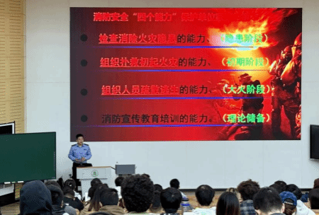 讲座开始前,吴飞越教官播放了消防宣传视频。随后,他从消防安全“四个能力”分别进行了宣传及培训,包括检查消除火灾隐患、组织扑救初起火灾、组织人员疏散逃生、消防宣传教育培训四个不同阶段的能力。吴飞越以典型火灾案例为基础,通过触目惊心的事故现场照片与视频、详尽的数据,深刻剖析了电动车违规进楼充电、老旧插排超功率等多个火灾案例发生的原因及危害,使同学们直观地了解到火灾发生的突发性与破坏性。“除了火灾的扑救,检查与消除潜在的火灾风险尤为重要。”吴飞越结合足球比分168
