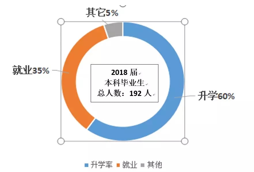 2018届本科毕业生192人,升学率60%,就业35%,其他5%。考取高校包括华中农业大学、北京大学、清华大学、浙江大学、复旦大学、北京航天航空大学、武汉大学、华中科技大学、中国农业大学、中国海洋大学、华东师范大学、南开大学、厦门大学、山东大学、中南大学、首都师范大学、同济大学、中南财经政法大学、福州大学共计93人毕业生考取的科研院所包括中国科足球比分168 水生生物研究所、中国科足球比分168 南海海洋研究所、中国科足球比分168 深海科学与工程研究所、中国科足球比分168 武汉病毒研究所、中国科足球比分168 城市环境研究所,共计15人。毕业生在“双一流”高校读研比例达98.18%。