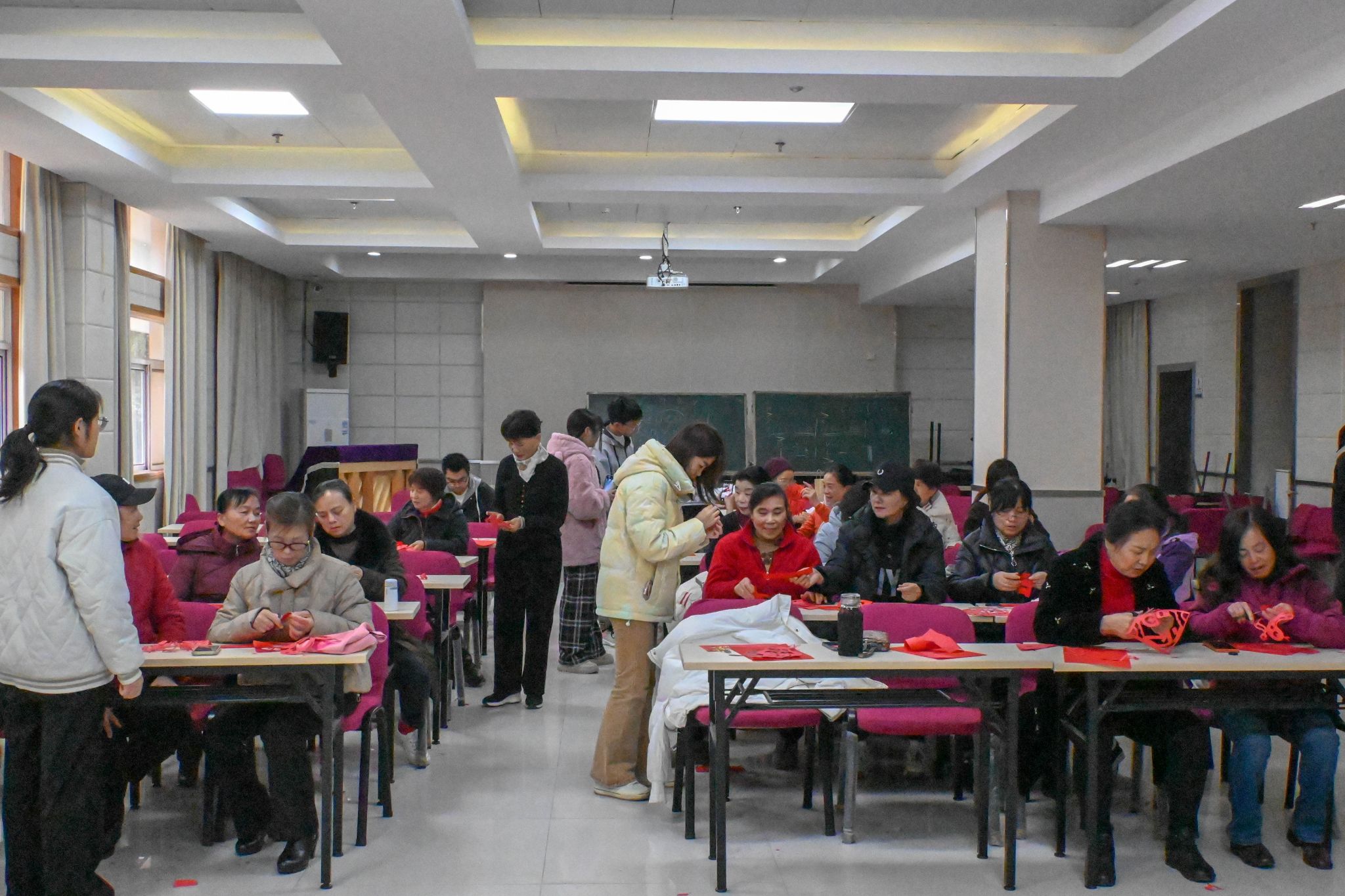 在12月19日下午14:30,由水产青年志愿者工作部主办的“剪纸传情,青春伴老”志愿活动在华中农业大学老年大学内成功举行,此次活动旨在通过传统剪纸艺术,搭建起青年与老年之间的沟通桥梁,促进代际交流,丰富老年群体的精神生活。