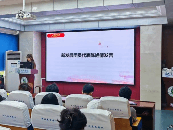 优秀团员代表叶姝涵宣读团员的权利与义务。回顾自己的团员经历,她始终记得第一次参加生态保护志愿活动时,学长学姐们顶着烈日清理渔网的身影。她鼓励新团员们努力学习科学文化知识,不断提高自己的综合素质,不放过每一个疑问,不忽视每一次进步,用扎实的学识为青春奠基,展现青春风采。
