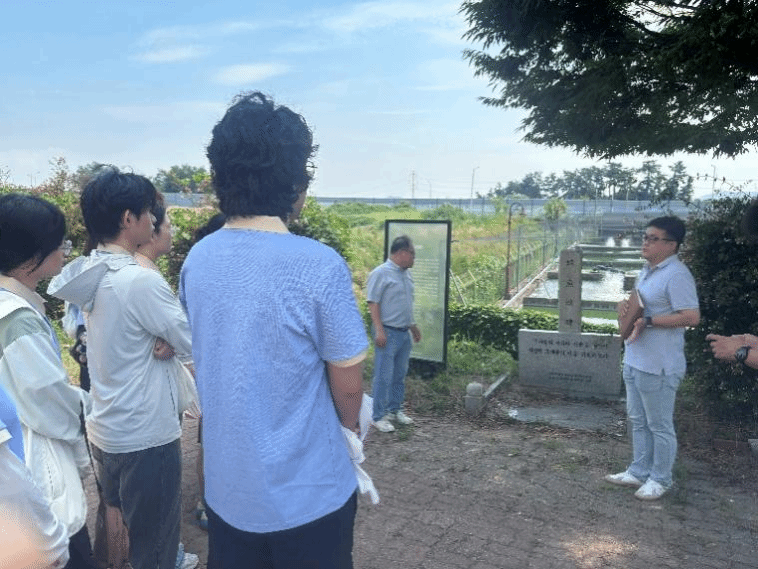 Hur Jun Wook教授介绍蛙鱼魂碑历史 张倩摄