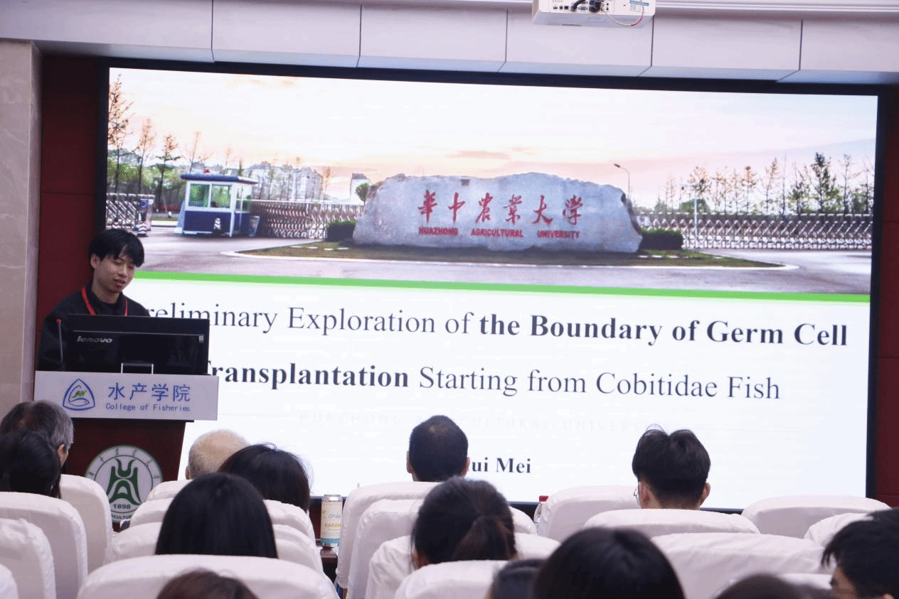 华中农业大学博士生梅熠辉作了题为“从鳅科鱼类出发对生殖细胞移植边界的初步探索”的报告。该研究聚焦鳅科鱼类的生殖细胞移植技术,探讨了不同物种间存在的“隐形边界”对细胞分化过程的阻碍问题。研究进一步尝试通过化学诱导和显微注射技术突破这一边界,为濒危鱼类的种质资源保护提供了新思路。