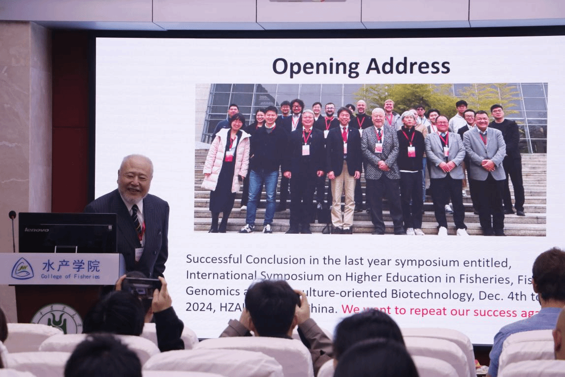 4月14日,首先,华中农业大学Katsutoshi ARAI教授介绍了本次论坛召开的背景和目的。本次研讨会旨在深入探讨水产养殖生物技术领域的前沿方法,包括基因组编辑、生殖细胞移植、生殖遗传学等技术,以拓宽和深化师生对遗传学、基因组学、生殖学的理解,并为进一步的水产养殖生物技术研究奠定基础。