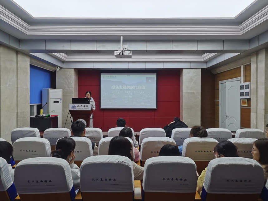 A105报告厅开展了“精读精讲”党的二十大系列专题学习活动,由华中农业大学“精读精讲”研究生宣讲团的覃海瑜同学进行了题为“绿色发展的时代意蕴”的学习报告,渔业资源与环境研究生第二党支部全体党员参与此次活动。