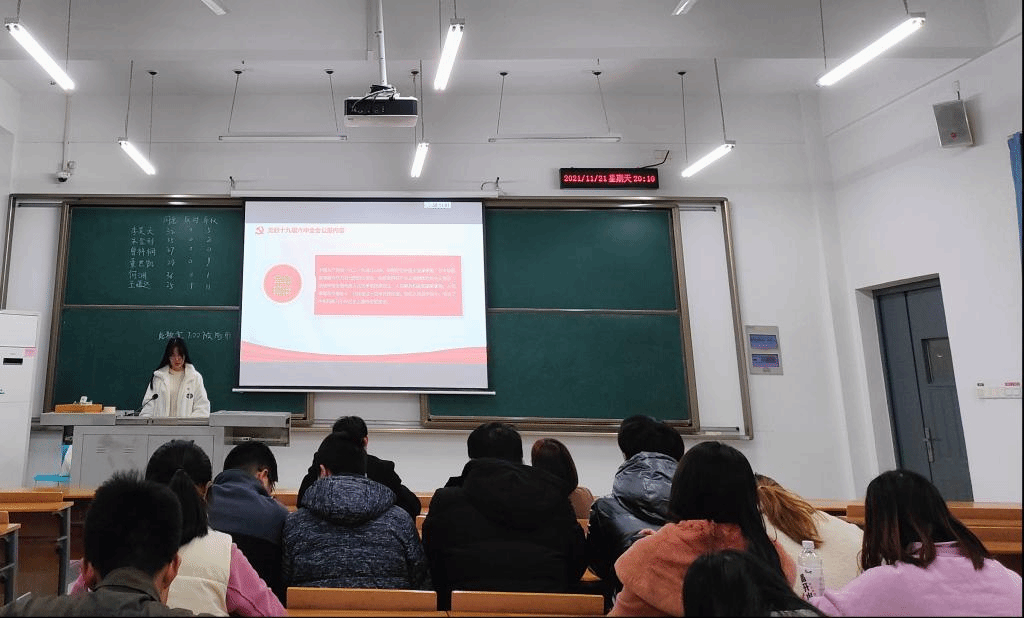 水产养殖学本科生第一党支部全体党员在四教C109教室开展主题党日活动,活动主题为学习十九届六中全会精神。郭安静同志领学,毕卓铃、黄敏、陈子健等同志代表各党小组分享学习心得。