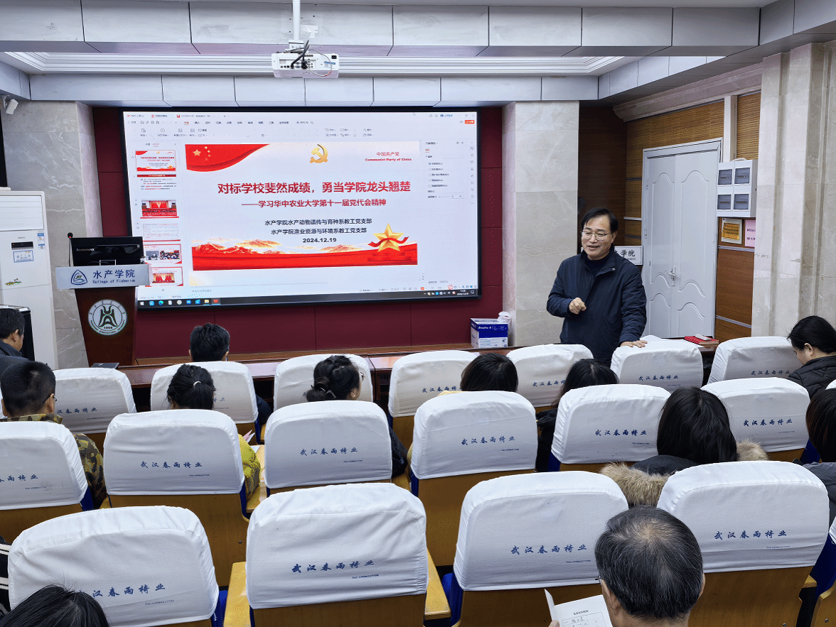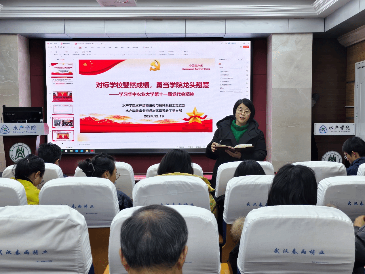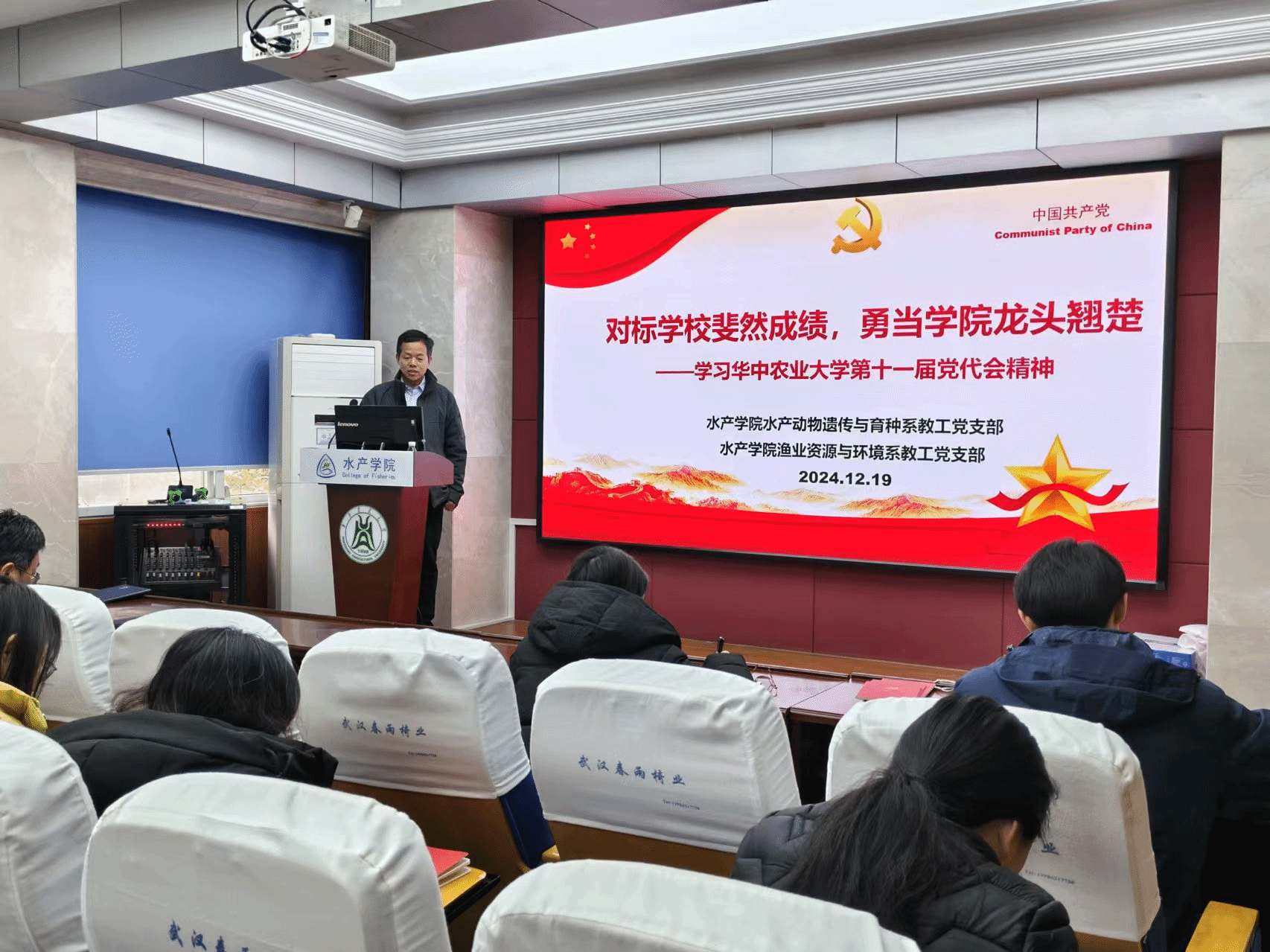 党委书记秦长平、副书记曹玉琼列席。活动由水产动物遗传与育种系党支部书记沈志刚主持,渔业资源与环境系党支部书记周琼主讲。
