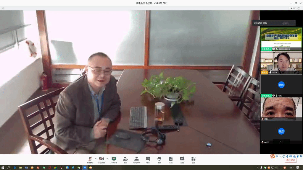 随后徐皓研究员从池塘设施养殖、工厂化养殖、深远海养殖和智慧养殖等方面向大家介绍了我国水产设施养殖技术的发展现状。目前我国已经逐步建立了池塘生态工程化和养殖信息化系统,国家大宗淡水鱼产业技术体系实现了绿色高效养殖模式的构建。徐皓研究员对于未来我国水产设施养殖科技的发展也进行了展望。他认为要继续研究设施养殖机械化作业装备、智能化养殖装备和高效养殖设施与模式,将技术转化为参数,将参数转变为工艺,将工艺转化为工程,并最终实现渔业的工厂化、集约化和智能化。