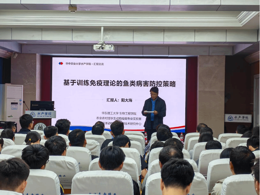 2024年第21期(总410期)“水产讲坛”在水产楼天辰报告厅A105举行,特邀华东理工大学阳大海教授作了题为“基于训练免疫理论的鱼类病害防控策略”的分享。